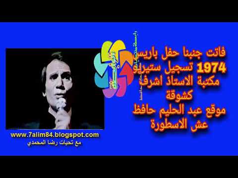 حفل قاعة المؤتمرات بباريس فرنسا 17 سبتمبر 1974يعتبر من الحفلات الرائعة جدا للعندليب بحيث لاقت نجاحا جماهيريا ملفتا بالموازات مع رواجها التجاريغير أن التسجيلات الصوتية المتاحة للحفل اما انها تسجيلات اذاعية او تسجيلات محولة من الفيديو ..هناك اسطوانات اصلية اصدرت بباريس لهذا الحفل مسجلة بطريقة الستيريو وتعتبر هي التسجيلات الأفضلموقع عش الأسطورة ينفرد بعرض هذه النسخ حصرياوالان مع فاتت جنبناSTEREOwww.7alim84.blogspot.com